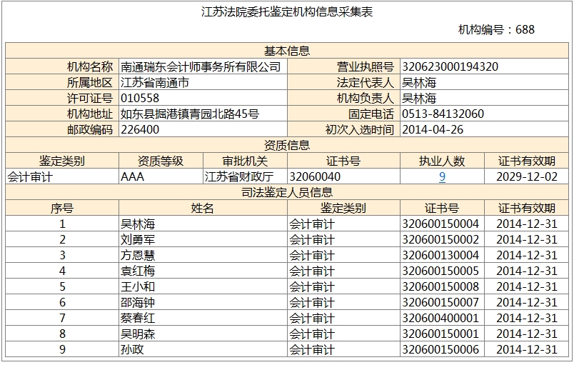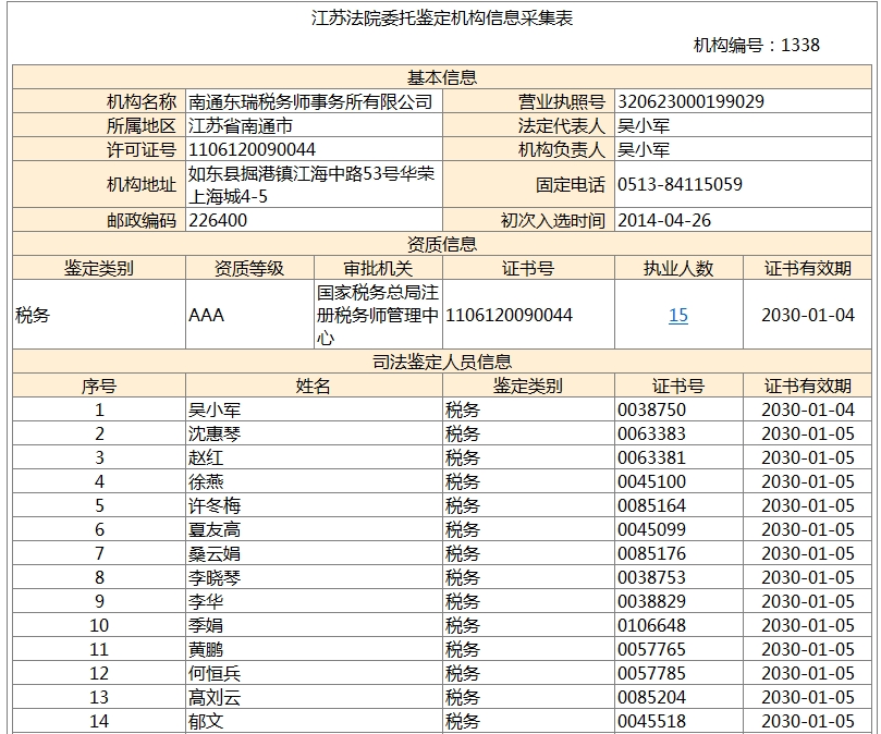 南通瑞東會計師事務(wù)所、南通東瑞稅務(wù)師事務(wù)所均進入《國家司法鑒定人和司法鑒定機構(gòu)名冊》
