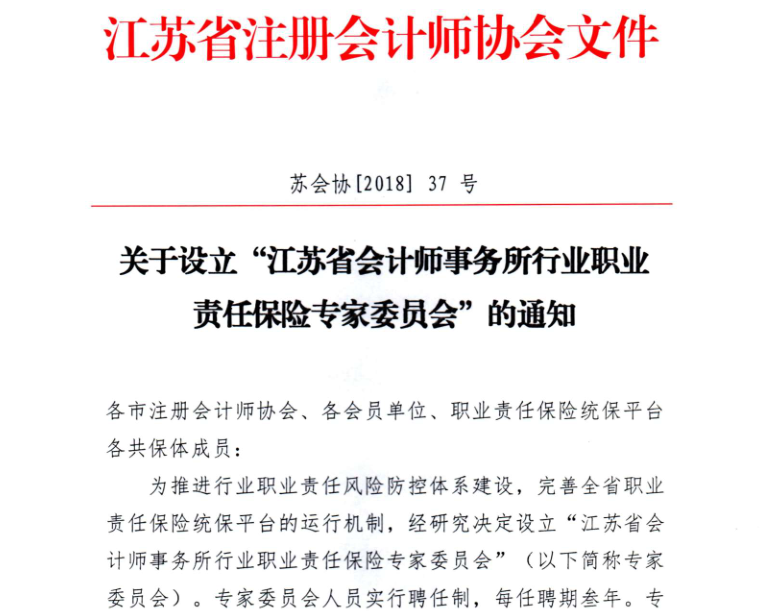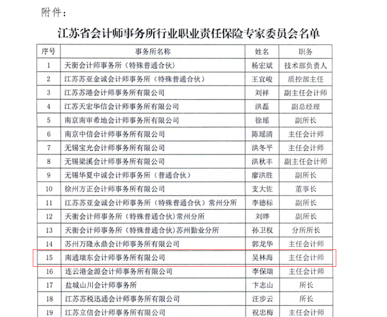 我所吳林海入選江蘇省會(huì)計(jì)師事務(wù)所行業(yè)職業(yè)責(zé)任保險(xiǎn)專家委員會(huì)