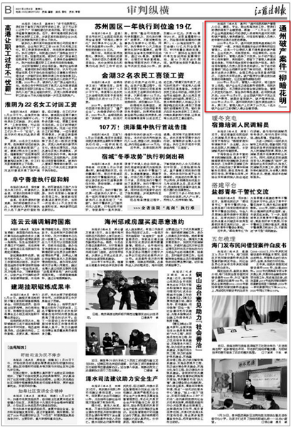 江蘇法制報截圖 近日“南通瑞東會計師事務所”的名字,不斷出現(xiàn)在《新華網》《江蘇法制報》的報道之中。一個小會所名字出現(xiàn)到主流新聞媒體中,實屬罕見。這要從我所承辦的一起破產案件說起。 2020年8月24日,通州區(qū)人民法院受理南通某瑞公司“執(zhí)轉破”一案,并指定南通瑞東會計師事務所擔任管理人。這是一個典型的企業(yè)無資產、無賬冊資料、無經營場所的三無企業(yè),債權人看不到任何受償希望的破產案件。 南通瑞東會計師事務所由多名專業(yè)人員組成的清算組,主任會計師吳林海親自帶隊。在承辦法院的指導下,管理人從不動產登記中心到車管所,再到銀行,四處奔波,全方位開展資產調查工作,可惜仍未能發(fā)現(xiàn)有價值的財產信息。管理人團隊苦苦尋思突破口,仔細尋找蛛絲馬跡,終于在稅務局申報表和市場監(jiān)督部門的企業(yè)檔案中發(fā)現(xiàn)了有益線索。原來債務人公司季某等三股東出資為認繳制,全國工商企業(yè)信息查詢網顯示,三股東均未實際出資。根據(jù)企業(yè)進入破產程序股東認繳出資加速到期的法律規(guī)定,讓這起案件柳暗花明! 2020年10月22日,管理人一紙訴狀,將三股東告上法庭在申請訴訟保全后,債務人企業(yè)無力提供訴訟保全保證保險金的情況下管理人毅然決然決定有管理人機構自己先行墊付,申請法院進行了保全保全。終于,身兼企業(yè)法定代表人、股東的季某出面了,但未發(fā)現(xiàn)他有履行能力。另外兩名不參與公司經營的股東湯某、尹某一臉“委屈”:“都是季某惹的禍,公司不破產,再多的錢砸下去都是‘無底洞’。但是法律是公正的,2020年12月21日,通州區(qū)人民法院判決三股東必須承擔出資義務。管理人負責人告知被告“股東出資是你們應當履行的義務,拿不到錢的債權人才是真正的受害者。”迫于法律的威力,2020年12月22日,“想通了”的湯某、尹某向管理人賬戶打來了20萬元,最終, 7名打工人員全額拿回血汗錢! “破產管理人專業(yè)、敬業(yè)和高效的工作,使我們的債權得到了全額受償,好高興……”1月29日,破產企業(yè)南通某瑞公司的債權人楊某等向管理人南通瑞東會計師事務所寄來感謝信,對管理人的辛勤付出表示由衷的感謝。 為債權人楊某代理執(zhí)行的律師感嘆:“破產案件中債權全額受償,我執(zhí)業(yè)二十多年來從沒見過! 盡職、盡力、盡心、盡我所能,維護債權人的利益、維護法律的權威這是南通瑞東會計師事務所作為破產管理人一貫堅持的基本原則。所承辦案件得到債權人的認可,得到法院的肯定,這是管理人的最大榮譽。 |